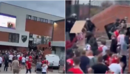 Συγκεκριμένα, οι οπαδοί των γηπεδούχων συγκρούστηκαν έξω από το γήπεδο με αστυνομικές δυνάμεις, πετώντας ό,τι έβρισκαν μπροστά τους.