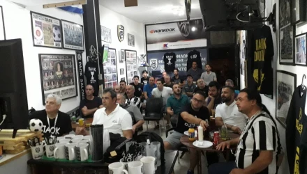 Τι κι αν βρίσκονται μακριά από την Τούμπα την μέρα που παίζει ο ΠΑΟΚ; Φροντίζουν στον προαύλιο χώρο του Συνδέσμου να κάνουν τη δική τους κερκίδα απολαμβάνοντας τις στιγμές με τους συνοπαδούς τους.