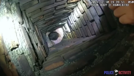 Οι αστυνομικοί μπήκαν από κάποιο παράθυρο του σπιτιού, ανέβηκαν στην κορυφή της στέγης και μόλις κοίταξαν στην καμινάδα, τον βρήκαν με τον έναν αστυνομικό να του φωνάζει: «Είσαι ηλίθιος. Δείξε μας τα χέρια σου».