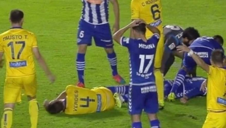Η σφοδρή εναέρια σύγκρουση μεταξύ δύο ποδοσφαιριστών στην αναμέτρηση μεταξύ της Αλαβές με την Αλκορκόν, είχε σαν αποτέλεσμα ο Ράφα Γκαρθία της πρώτης να πέσει στο έδαφος έχοντας χάσει τις αισθήσεις του για λίγο και να εισαχθεί εσπευσμένα στο νοσοκομείο, με τη διάγνωση να κάνει λόγο για κάταγμα κρανίου.