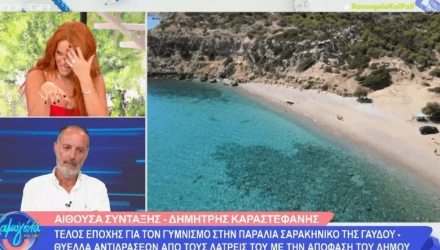 Με αφορμή την απαγόρευση του γυμνισμού στην παραλία Σαρακήνικο της Γαύδου, η Σίσσυ Χρηστίδου αποκάλυψε τη δική της περιπέτεια, στις περσινές της διακοπές.