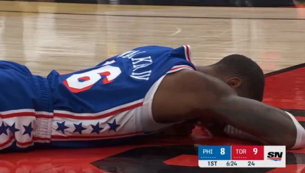 Ο παίκτης των Σίξερς έμεινε κάτω για λίγα λεπτά, πριν καταφέρει να σηκωθεί και να περπατήσει προς τον πάγκο και έπειτα αποσυρθεί για τα αποδυτήρια.