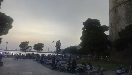 Οι υψηλές για την εποχή θερμοκρασίες στη Θεσσαλονίκη οδήγησαν πολλούς ανθρώπους στη Νέα Παραλία που αυτή τη στιγμή είναι κυριολεκτικά «σκασμένη».