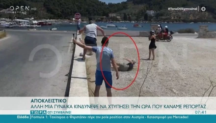 Όταν οι τουρμπίνες παίρνουν μπροστά, μία από τις γυναίκες που βρισκόταν στο σημείο, παρασύρεται και πέφτει κάτω, ευτυχώς όμως χωρίς να τραυματιστεί σοβαρά.