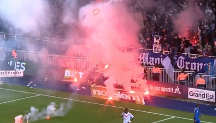 Ο διαιτητής διέκοψε αρχικά τον αγώνα, αλλά αργότερα έδειξε να συνεχιστεί. Οι οπαδοί της Τρουά όμως με νέα ρίψη καπνογόνων διέκοψαν οριστικά την αναμέτρηση, σύμφωνα με εικόνες από το Prime Video.