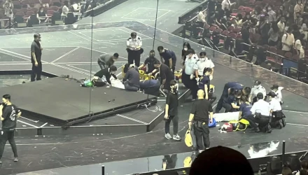 Βίντεο που κυκλοφορεί στα μέσα κοινωνικής δικτύωσης δείχνεί τα μέλη του συγκροτήματος, Άνσον Λο και Ένταν Λούι να τραγουδούν στη σκηνή συνοδεία δώδεκα χορευτών, όταν μία από τις LED γιγαντοοθόνες που κρέμονταν από την οροφή, αποσπάστηκε και έπεσε κάτω.