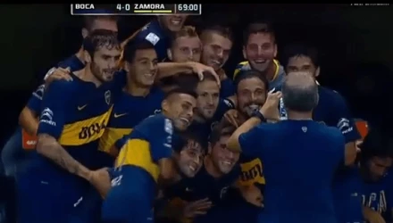 Με έναν πρωτότυπο πανηγυρισμό γιόρτασαν οι παίκτες της Μπόκα Τζούνιορς το 4ο τους γκολ κόντρα στην Ζαμόρα.