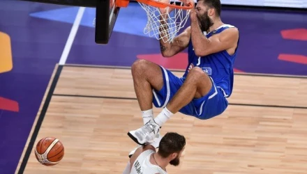 Ο διεθνής πλέι μέικερ ύψωσε την μπάλα και ο Καρδιτσιώτης σέντερ την κάρφωσε με δύναμη στο καλάθι της Λιθουανίας στη νίκη-πρόκριση της Εθνικής μας με 77-64