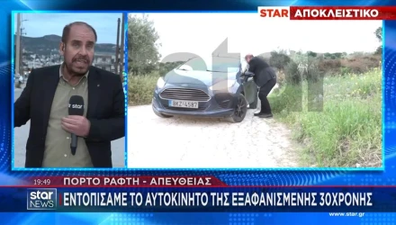 Σύμφωνα με αποκλειστικές πληροφορίες, η κάμερα του Star και ο Βαγγέλης Γκούμας, κατά τη διάρκεια ρεπορτάζ στην περιοχή, εντόπισαν το μπλε όχημα της νεαρής κοπέλας στο Πόρτο Ράφτη, αφού στο missing alert, που είχε εκδοθεί, είχε δοθεί και ο αριθμός της πινακίδας της.