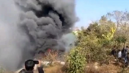 Το αεροπλάνο συνετρίβη κοντά στον ποταμό Σέτι και τυλίχθηκε στις φλόγες, όπως φαίνεται από βίντεο που κυκλοφορούν ήδη στα τοπικά μέσα και social media.