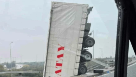 Σοκαριστικό τροχαίο στη Θεσσαλονίκη: Φορτηγό κρεμάστηκε από γέφυρα