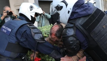 Όπως είπε ο κ. Κουτσούμπας οι αστυνομικοί επιτέθηκαν στους διαδηλωτές χωρίς να τηρούν κανένα μέσο προστασίας. Οι συγκεντρωμένοι παραμένουν στο σημείο.