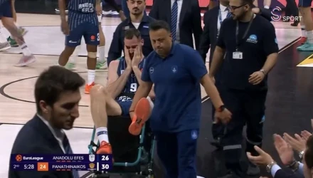 Anadolu Efes'in Yunan pivotu Georgios Papagiannis, Panathinaikos maçının ikinci çeyreğinde sol dizinden sakatlık yaşayarak soyunma odasına götürüldü. Epey can sıkıcı bir görüntü. Çok geçmiş olsun Big Papa 🙏 pic.twitter.com/hfN07EG8Za
