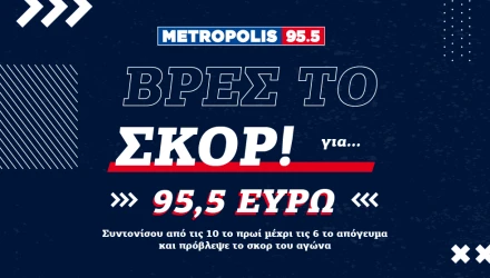 Το στοίχημα είναι το φόρτε σου; Ο Metropolis 95.5 σου δίνει την ευκαιρία κάθε εβδομάδα να βρεις το ακριβές σκορ των play off και να πας ταμείο με 95,5 ευρώ!