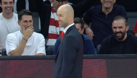 Σε μια φάση που ο Ολυμπιακός ζήτησε φάουλ, οι οπαδοί των «ερυθρόλευκων» που βρίσκονταν στις court seats, πίσω από τον πάγκο της Μονακό, διαμαρτυρήθηκαν. Ο Βασίλης Σπανούλης γύρισε το κεφάλι του και τους κοίταξε αρχικά με ένα άγριο βλέμμα διαφωνώντας.