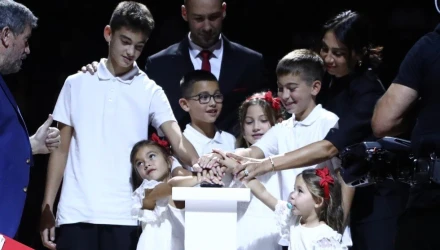 Ο Βασίλης Σπανούλης πήρε το λόγο κατά τη διάρκεια της βράβευσής του από τον Ολυμπιακό και στο πλαίσιο της συγκινητικής ομιλίας του μίλησε για τη σύζυγό του, Ολυμπία Χοψονίδου, λέγοντας της ευχαριστώ για την οικογένεια που του χάρισε και τη στήριξη που του πρόσφερε.