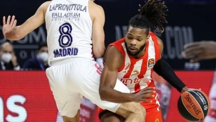 Ο Ερυθρός Αστέρας επικράτησε της Ρεάλ με 79-77 στο ντέρμπι του WiZink Center και έφυγε με ένα μεγάλο διπλό από την Μαδρίτη, φτάνοντας τις 7 νίκες στην κανονική διάρκεια της EuroLeague. Μεγάλο άτυχος της βραδιάς ο Ρούντι Φερνάντεθ, ο οποίος αποχώρησε στο τελευταίο λεπτό με πρόβλημα στη μέση.
