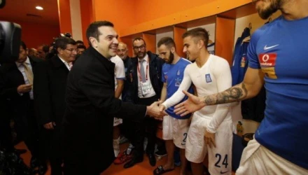 Τα αποδυτήρια της εθνικής μας ομάδας επισκέφθηκε μετά το τέλος του αγώνα της Ελλάδας με την Τουρκία στην Κωνσταντινούπολη ο Αλέξης Τσίπρας.