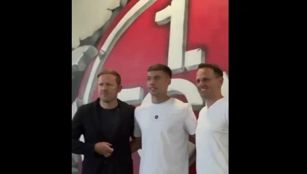 Οι άνθρωποι της νέας του ομάδας τον υποδέχθηκαν με ενθουσιασμό και δημοσίευσαν, μάλιστα, στον επίσημο λογαριασμό τους στο fb, τις πρώτες στιγμές του 18χρονου επιθετικού, από την άφιξη του στο αεροδρόμιο, μέχρι την αγκαλιά με τον τεχνικό διευθυντή της ομάδας, Όλαφ Ρέμπε.