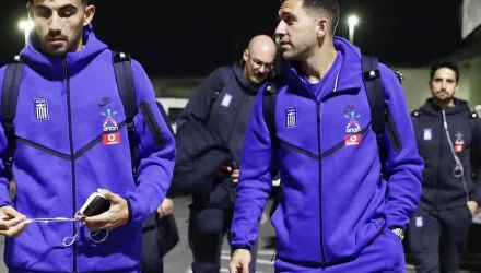 Ο φωτογραφικός φακός κατέγραψε μια ιδιαίτερη στιγμή: τον 17χρονο Κωνσταντίνο Καρέτσα να υποδέχεται την αποστολή. Ο νεαρός winger, που αγωνίζεται στο Βέλγιο με τη φανέλα της Γκενκ, είχε ταξιδέψει μόνος του, καθώς ταλαιπωρήθηκε από ίωση και δεν κατάφερε να βρεθεί με την υπόλοιπη αποστολή.