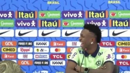Ένα σπάνιο περιστατικό που χάρισε στιγμές γέλιου εκτυλίχθηκε στη συνέντευξη Τύπου του Βινίσιους. Συγκεκριμένα, την ώρα που ο σταρ της Ρεάλ και της Βραζιλίας έκανε δηλώσεις στους εκπρόσωπους των ΜΜΕ, εμφανίστηκε μία γάτα που κάθισε στο πάνελ σαν να μην συμβαίνει τίποτα...