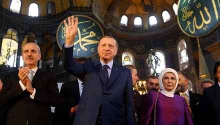 Την Αγία Σοφία επισκέφτηκε το μεσημέρι της Κυριακής ο Τούρκος πρόεδρος, Ρετζέπ Ταγίπ Ερντογάν, με συνοδεία για να επιθεωρήσει τις εργασίες μετατροπής του μνημείου σε τζαμί ενόψει της πρώτης προσευχής την ερχόμενη Παρασκευή, 24 Ιουλίου.