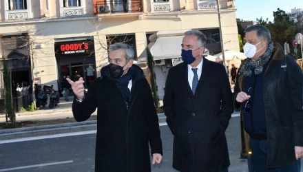 Στον άξονα της Αγίας Σοφίας, που μετά από 14 χρόνια αποδόθηκε και πάλι στους πολίτες απαλλαγμένος από τις λαμαρίνες που είχαν τοποθετηθεί για τις ανάγκες του έργου κατασκευής του μετρό, βρέθηκαν σήμερα ο Υφυπουργός Εσωτερικών, αρμόδιος για θέματα Μακεδονίας – Θράκης, Σταύρος Καλαφάτης, ο Δήμαρχος Θεσσαλονίκης Κωνσταντίνος Ζέρβας κι ο Πρόεδρος της Αττικό Μετρό Α.Ε. Νίκος Ταχιάος.