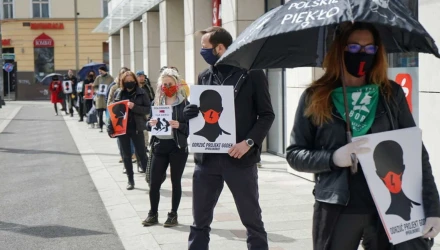 Πολλές δεκάδες γυναίκες, αλλά και άντρες, με αυτοκίνητα, ποδήλατα και πεζοί, παραβίασαν σήμερα την απαγόρευση των συναθροίσεων λόγω της επιδημίας του νέου κορωνοϊού στην Πολωνία και έκλεισαν τους δρόμους σε κεντρική συνοικία της Βαρσοβίας για να διαδηλώσουν κατά του νομοσχεδίου που περιορίζει την ήδη περιορισμένη στην Πολωνία πρόσβαση στην άμβλωση.