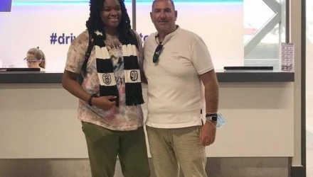 Εκεί την υποδέχτηκε ο έφορος του τμήματος, Βασίλης Αγγελίδης, ο οποίος την καλωσόρισε στην πόλη της Θεσσαλονίκης.
