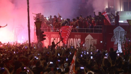 - Oι υπεύθυνοι του Ολυμπιακού είχαν ζητήσει με ανακοινώσεις, να μην γίνουν πανηγυρισμοί, λόγω των μέτρων για την πανδημία.