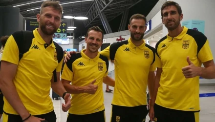 Λίγο πριν από τα μεσάνυκτα η αποστολή του Αρη πέταξε από τη Θεσσαλονίκη για το Ερεβάν της Αρμενίας, όπου θα προπονηθεί σήμερα και αύριο.
