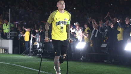 Ο αρχηγός της Ένωσης γνώρισε την αποθεώση απο τους φίλους της ομάδας, καθώς εμφανίστηκε στον αγωνιστικό χώρο με πατερίτσες και με περιβραχιόνιο με το «Α» , τιμώντας τη μνήμη του αδικοχαμένου φίλου του Άρη, Άλκη Καμπανού.
