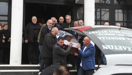Πριν από λίγη ώρα έφτασε η σορός του και το φέρετρο ήταν σκεπασμένο με την ασπρόμαυρη σημαία ενώ τον φίλο και αδελφό του συνόδευαν οι βετεράνοι ποδοσφαιριστές του ΠΑΟΚ.