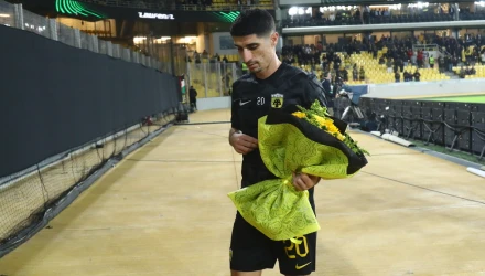 Με αργά βήματα προχώρησαν προς το σημείο όπου είχε τοποθετηθεί η φωτογραφία του Μάριου, ενώ από τις εξέδρες ακούγονταν χειροκροτήματα και συνθήματα από τους φίλους της Ένωσης που φώναζαν το όνομά του. Μαζί τους βρέθηκε και ο αρχηγός Πέτρος Μάνταλος.