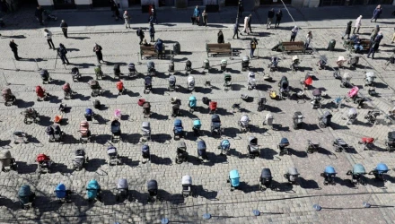 Συγκλονιστική φωτογραφία: 109 άδεια παιδικά καρότσια για τα 109 νεκρά παιδιά του πολέμου στην Ουκρανία
