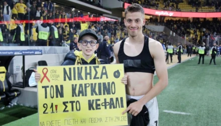 Ο λόγος για τον μικρό φίλαθλο της ΑΕΚ Μιχαήλ Πάνο που έδωσε μάχη με τον καρκίνο στο κεφάλι και βγήκε νικητής.