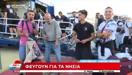 Μόνιμη θέση στο... λιμάνι του Πειραιά έχει τα πρωινά ο ρεπόρτερ του ΣΚΑΪ, Γιώργος Τσελίκας, ο οποίος υποδέχεται επιβατικό κοινό, κυρίως νεανικό, το οποίο αναχωρεί για ελληνικά νησιά.