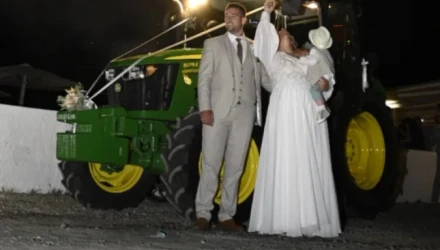 Σύρος: Ζευγάρι πήγε στον γάμο του με... τρακτέρ (vid)