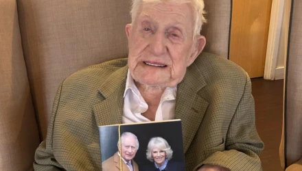 Ο Ντόναλντ Ρόουζ, ο οποίος γεννήθηκε το 1914 στο Westcott του Surrey, έλαβε επίσης μια κάρτα από τον βασιλιά Κάρολο και τη βασίλισσα Καμίλα, την οποία έδειξε με υπερηφάνεια. Άλλες εκπλήξεις στο γηροκομείο περιελάμβαναν την Κέιτ από το D-Day Darlings, ένα γυναικείο συγκρότημα που έφτασε στον τελικό του ITV's Britain's Got Talent.
