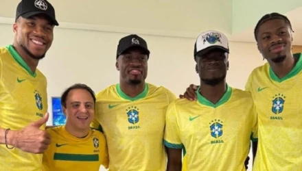 Família Antetokounmpo presente na Neo Química Arena para acompanhar Brasil e Paraguai.