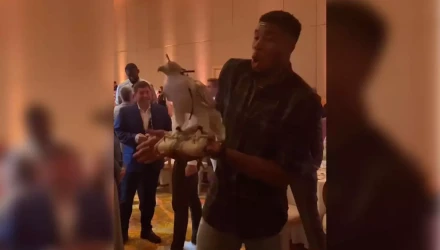 Ο Γιάννης Αντετοκούνμπο βρίσκεται στο Άμπου Ντάμπι μαζί με τους Μιλγουόκι Μπακς για preseason φιλικό με τους Ατλάντα Χοκς. Λίγες ώρες πριν την αναμέτρηση, ο Αντετοκούνμπο βρέθηκε σε εκδήλωση μαζί με τους Μπακς, εκεί είδε έναν άνδρα να έχει στο χέρι ένα λευκό γεράκι και ζήτησε να το ακουμπήσει.