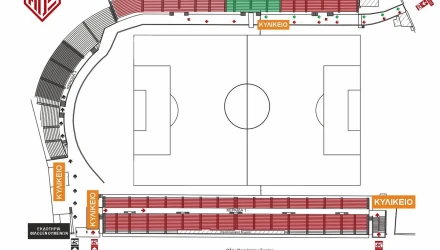 Η είσοδος των φιλάθλων της φιλοξενούμενης ομάδας θα πραγματοποιηθεί από τη Θύρα 1 και η τοποθέτησή τους θα γίνει στην κερκίδα Κουλούρη (πέταλο).