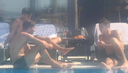 Κρέσπο, Μουργκ και Σβαμπ, στην πισίνα του Royal, κάνουν τα πλάνα τους χαλαρά, μία ημέρα πριν η αποστολή του ΠΑΟΚ αναχωρήσει για την Ολλανδία για το βασικό στάδιο προετοιμασίας...