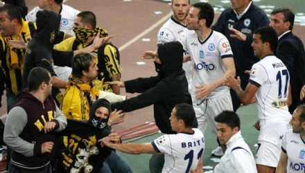Απρίλιος 2011 ΟΑΚΑ: Τελικός κυπέλου ανάμεσα στη ΑΕΚ και τον Ατρόμητο. Το πανελλήνιο με φρίκη βλέπει σκηνές απίστευτες, με τους οπαδούς της Ένωσης να εισβάλουν κατά εκατοντάδες στον αγωνιστικό χώρο, να κυνηγούν τους εμβρόντητους αντιπάλους της ομάδας τους, να διακόπτουν το παιχνίδι, να ρίχνουν και τις πρώτες κλωτσιές σε όσους βρίσκουν μπροστά τους. Χαμός στην κυριολεξία. Ο τελικός διακόπτεται. Ο χρόνος που μεσολαβεί και ο οποίος όλοι υπολογίζουν ότι θα κλείσει με την τιμωρία της ΑΕΚ, απλά σταματάει και με άνωθεν εντολή το παιχνίδι συνεχίζεται, κάτω από τέτοιες τραγικές συνθήκες και με τους οπαδούς της ΑΕΚ περιμετρικά να κυκλώνουν τον αγωνιστικό χώρο.