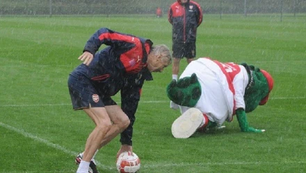 Στην τελευταία προπόνηση της Άρσεναλ ο Αλσατός τεχνικός κάτω από καταρρακτώδη βροχή έβαλε τους Θίο Γιούλκοτ και Μικέλ Αρτέτα να εκτελέσουν πέναλτι, αφού πρώτα περιστρεφόντουσαν για ένα λεπτό γύρω από μια μπάλα.