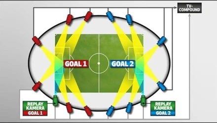 Η γερμανική λίγκα συμφώνησε με την αγγλική εταιρεία Hawk-Eye, η οποία χρησιμοποιεί 14 υψηλής ταχύτητας κάμερες και μία ακόμη που βρίσκεται στην οροφή του σταδίου πάνω από κάθε εστία. Με ένα ειδικό σύστημα ο διαιτητής θα ενημερώνεται για το αν η μπάλα πέρασε τη γραμμή, ενώ θα υπάρχει αντίστοιχο πλάνο στους τηλεοπτικούς δέκτες και τα μάτριξ του γηπέδου.