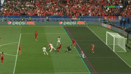 Η φάση ξεκίνησε από βαθιά μπαλιά του Μεντί, ο Μπενζεμά έκανε μια ντρίμπλα και έδωσε πάσα προς τον Βαλβέρδε, εκεί μπλέχτηκαν Κονατέ και Φαμπίνιο, με την μπάλα να καταλήγει ξανά στον αρχηγό της Ρεάλ που με αριστερό πλασέ άνοιξε το σκορ. Ο επόπτης όμως σήκωσε την σημαία του για οφσάιντ και στη συνέχεια το VAR επιβεβαίωσε την απόφασή του.