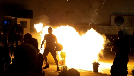 Λίγο μετά τις 8 το βράδυ, ομάδα περίπου 20 ατόμων πέταξε βόμβες μολότοφ κοντά στο μνημείο του Αγνώστου Στρατιώτη, προκαλώντας ένταση.