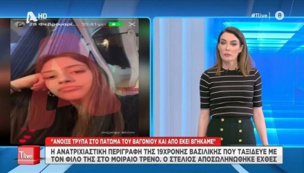 Η Βασιλική και ο σύντροφός της, Στέλιος βρίσκονταν στη μοιραία αμαξοστοιχία που συγκρούστηκε στα Τέμπη. Η νεαρή φοιτήτρια φυσικοθεραπείας, που γλίτωσε από θαύμα με τον αγαπημένο της καθώς κάθονταν στο κυλικείο του τρένου όταν έγινε η σύγκρουση, μίλησε στην Τατιάνα Στεφανίδου και στο T-live και καθήλωσε με την αφήγησή της…