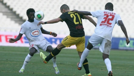 Ο Απόλλων στη συνέχεια ισορρόπησε το παιχνίδι και μετά το 20' άρχισε να ελέγχει τον ρυθμό του αγώνα, μην επιτρέποντας στην ΑΕΚ να βγάζει επιθέσεις με την ίδια ευκολία. Στο 43' οι «κοκκινόμαυροι» είχαν μεγάλη ευκαιρία για το 2-1, με τον Ευσταθίου μετά από ωραία ενέργεια να βγαίνει απέναντι από τον Βούρα, αλλά το σουτ του να είναι αδύναμο και να ελέγχεται από τον τερματοφύλακα της ΑΕΚ.
